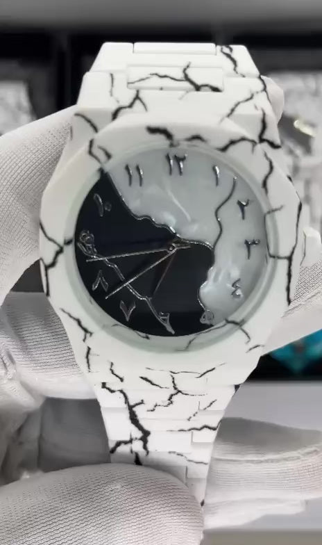 Mena Premium quality white Arabic Aura watch fully water resistance and in fiber dial in marble colours straps